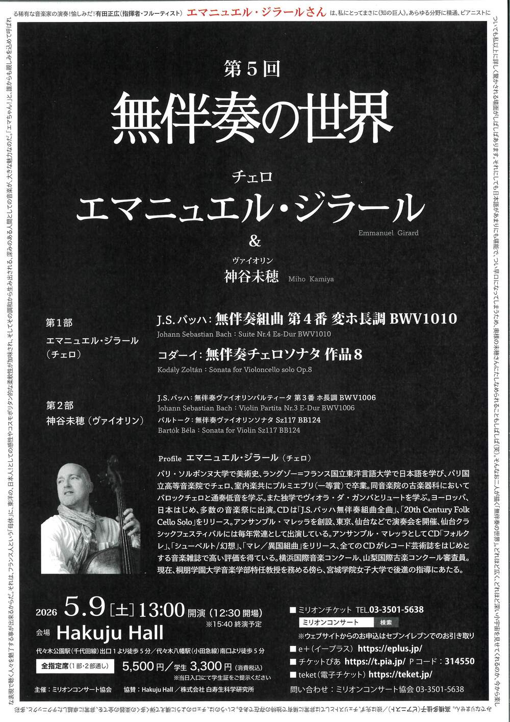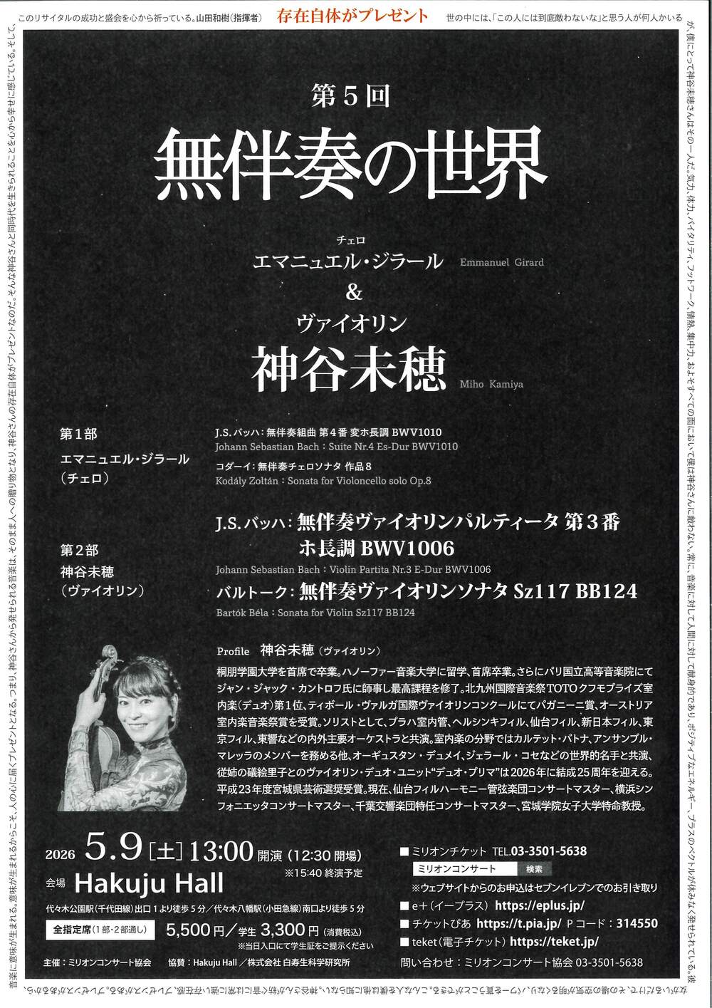 エマニュエル・ジラール(チェロ) 神谷未穂(ヴァイオリン)
