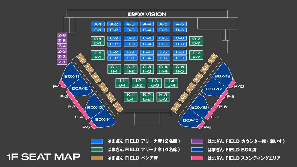 ※観覧エリアは、座席とスタンディングの2種類となります。スタンディングの場合、お座席のご用意がございませんのであらかじめご了承ください
