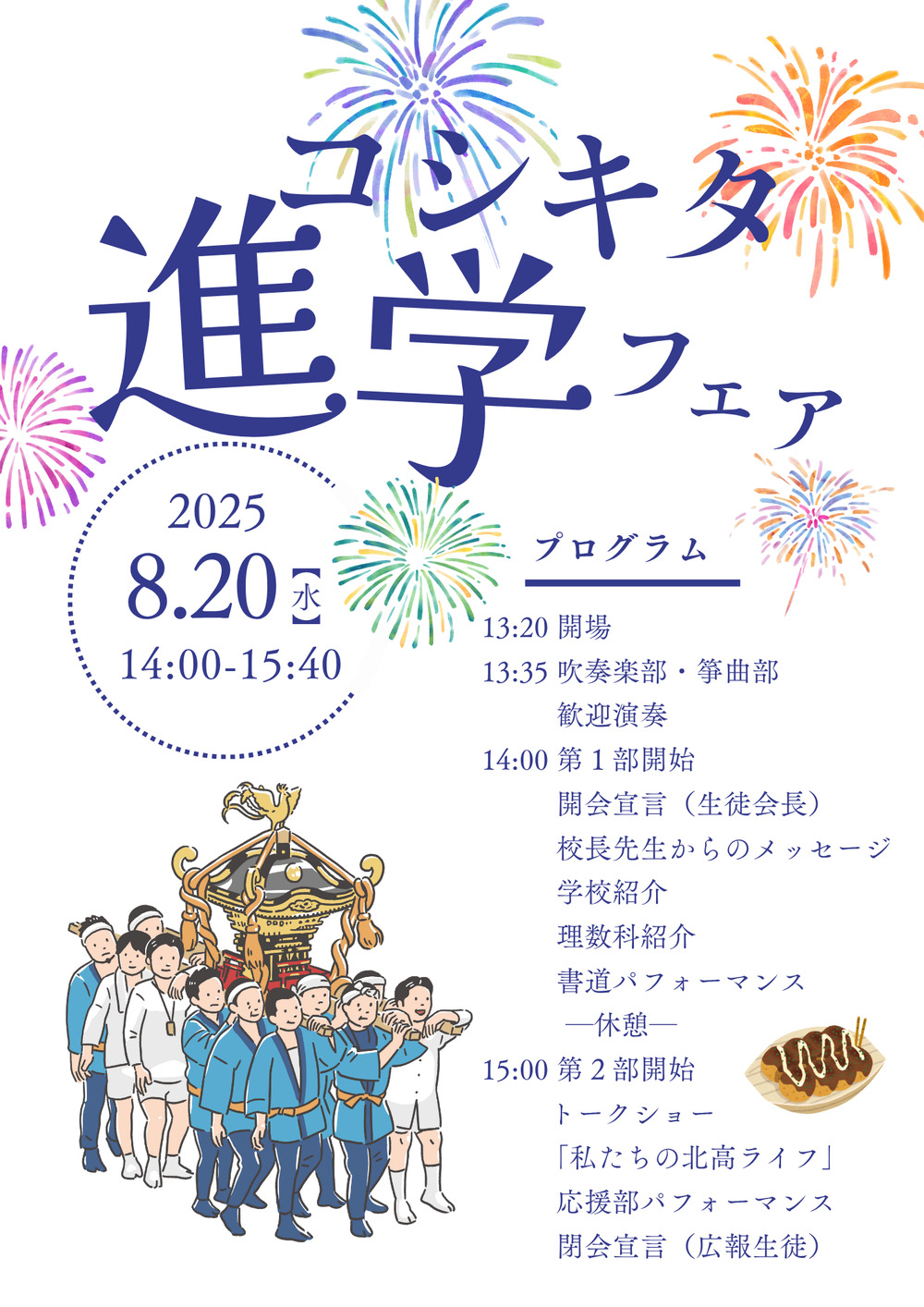 15:00 第2部開始 トークショー 「私たちの北高ライフ」 、応援部パフォーマンス 、閉会宣言(広報生徒)