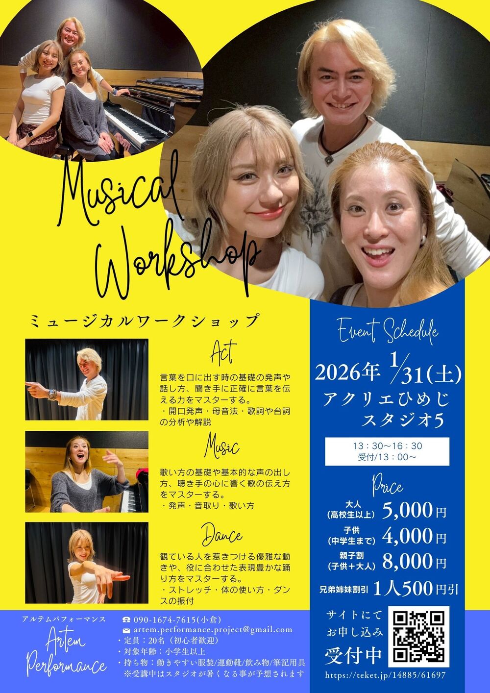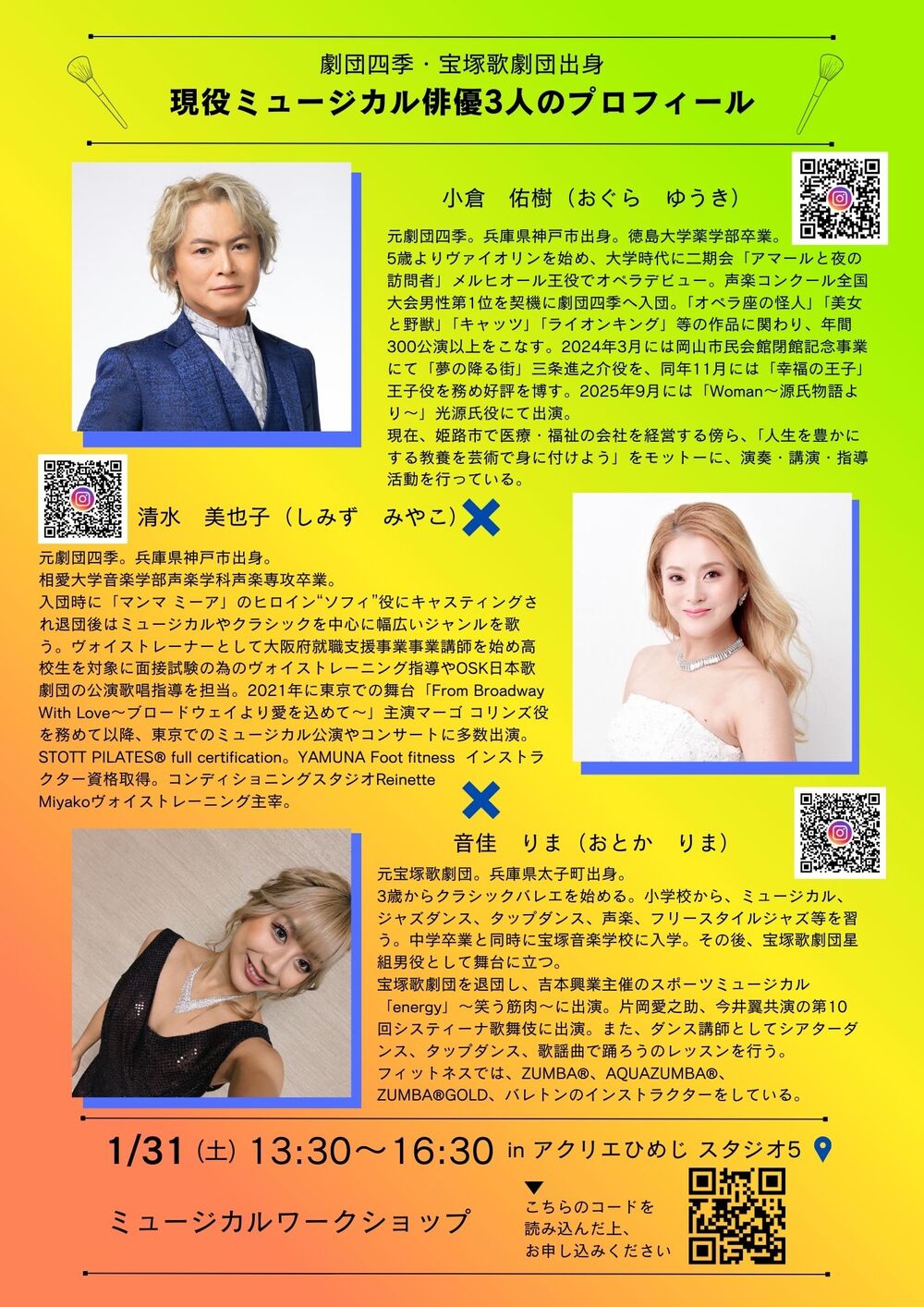 劇団四季と宝塚歌劇団出身の現役ミュージカル俳優によるミュージカルワークショップです。