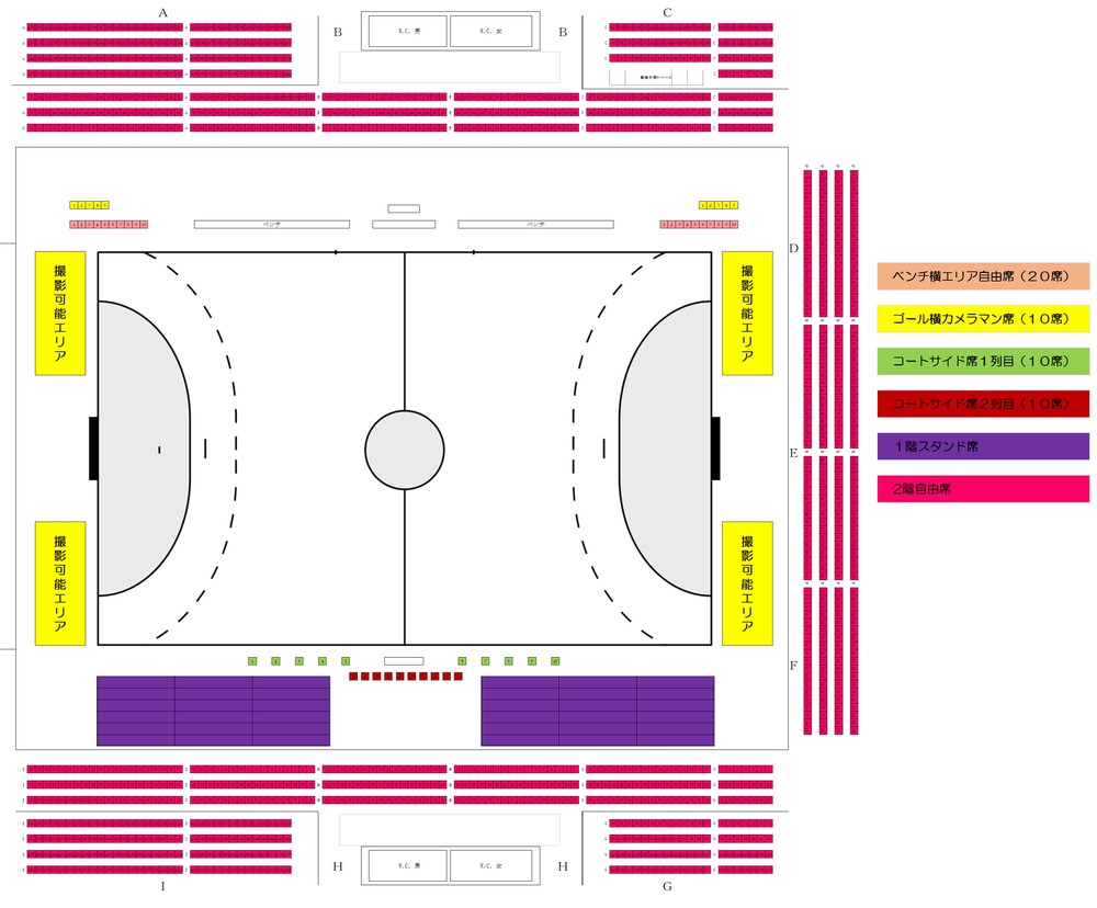 ※「チームベンチ横席」/「ゴール横席」/「コートサイド席」は、10時45分から入場可(その他席は11時から)、試合終了後に会場を周回する選手とグータッチできます!