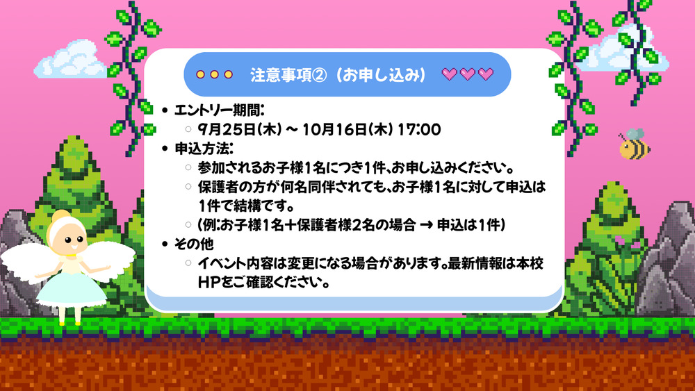 ※お申し込みは、参加されるお子様1名につき1件でお願いいたします。