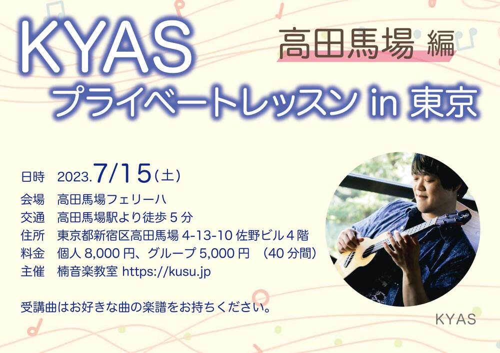 KYASさんとの対面プライベートレッスン(高田馬場)の予約申込みです。