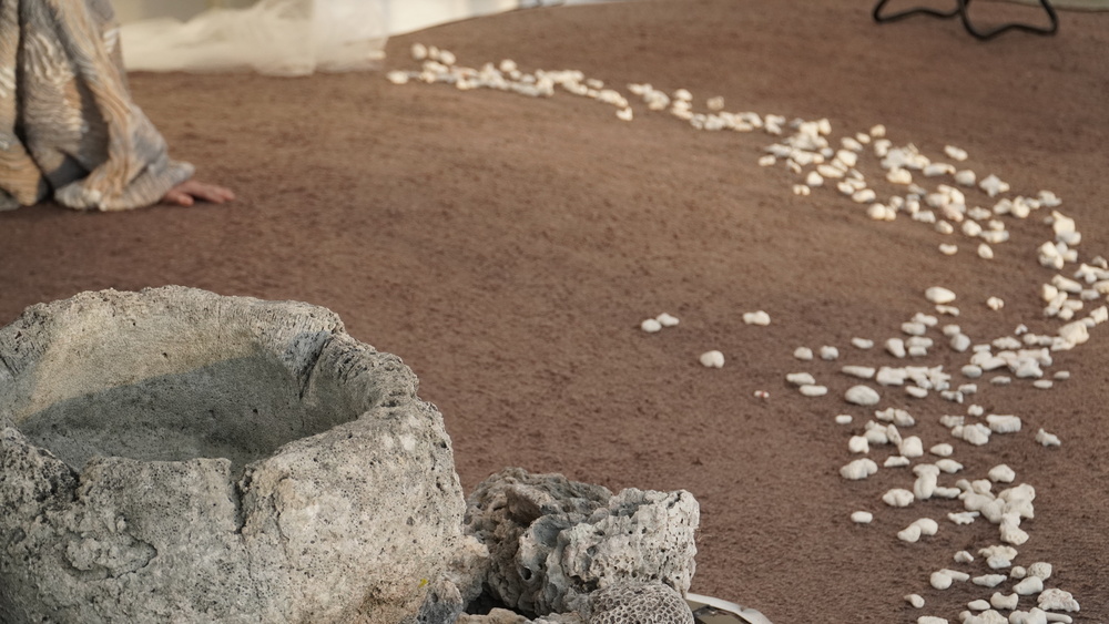 喜界島の過去・現在・未来の自然科学データと在来知をもとに創作し、喜界島と東京(こまばアゴラ劇場)にて上演した「ユラウ」に続く、本プロジェクトの2作目となる。この「海のセレナーデ」は、数万年に一度の大地震によりサンゴ礁が隆起してできた島である喜界島の5万年前のサンゴやシャコガイ殻などの環境復原データ、2024年元旦の地震で能登半島が隆起したことから大量に発見されたサンゴ(キクメイシモドキ)の体験をもとに創作。金沢21世紀美術館 「すべてのものとダンスを踊って―共感のエコロジー」展内の「アニマ・レイヴ」関連企画として、交流スペースにて初演。研究者からのフィードバックを受け、戯曲・演出のリバイスを行い、新たなバージョンとして上演する。
