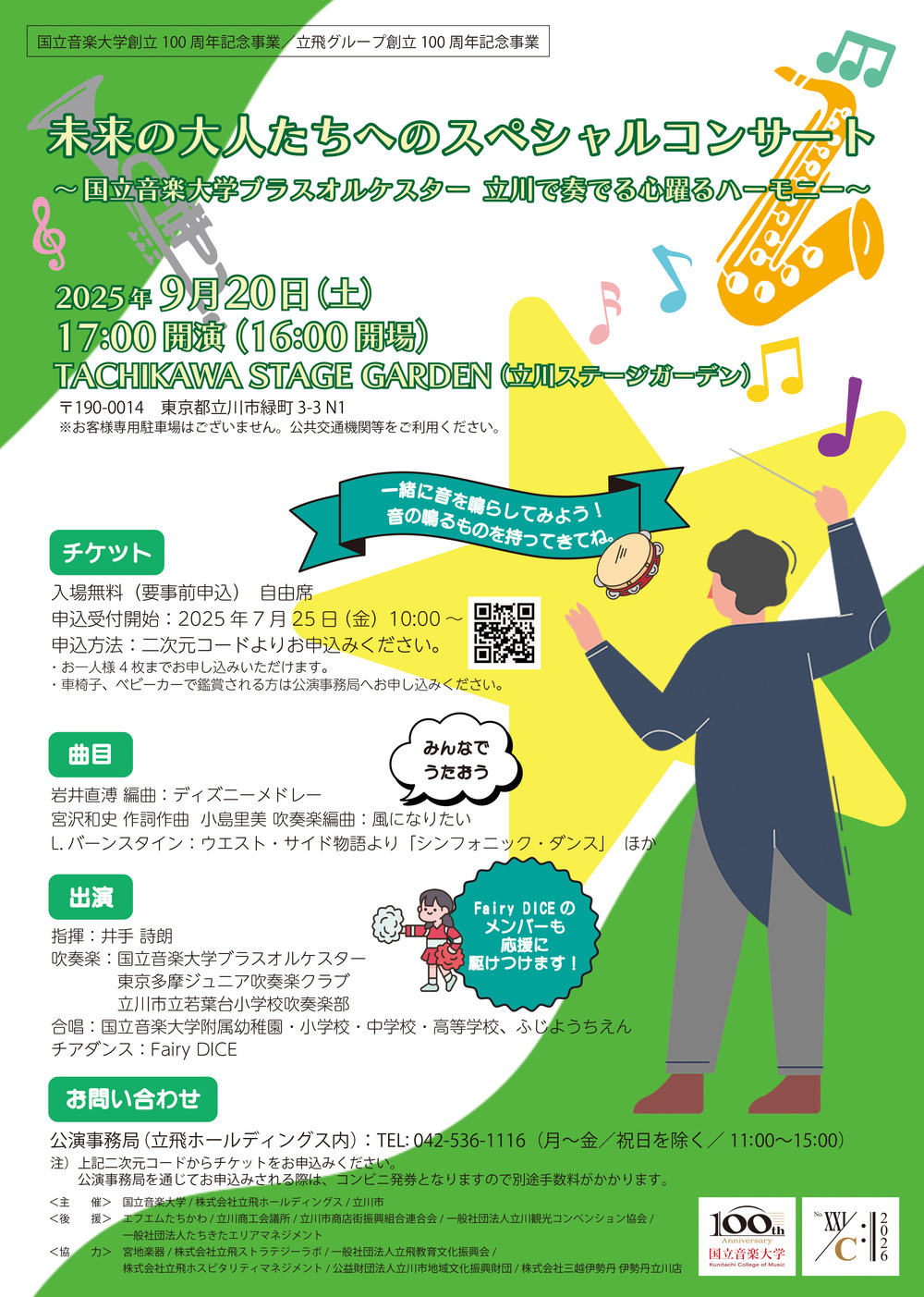 国立音楽大学ブラスオルケスターによる、子供から大人まで幅広い世代に向けたコンサート。