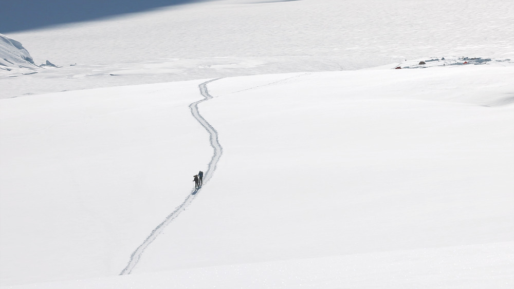 撮影はけいさん、大石さんと旧知の仲である山岳カメラマンの平賀淳さんに依頼しました。平賀さんは、アルピニスト・野口健さんのエベレスト清掃登山やアドベンチャーレースなど山で挑戦する人々の姿をカメラに収めることを得意とし、2014年から2021年にかけ日本三百名山を人力踏破する田中陽希さんを追ったNHKの番組『グレートトラバース』シリーズで監督の岡本と長年タッグを組んできた方です。彼もまた自己革新者で、今回ともに映画を作りたいと私たちの船に乗り込んでくれましたが、2022年5月、アラスカで撮影中、悲しい事故が起こり、急逝されました。