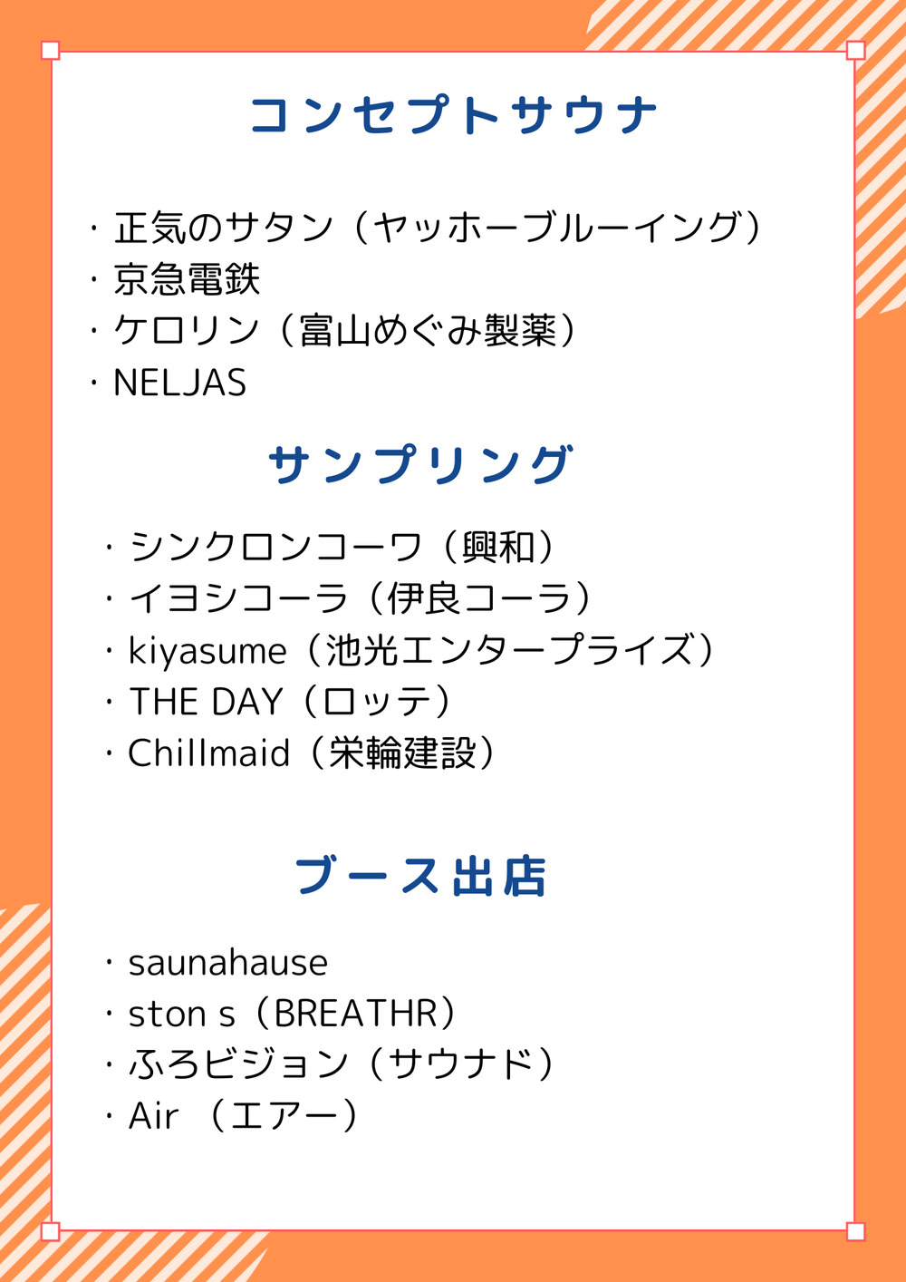 サウナだけでなく、音楽、フード、アルコール、物販なども楽しめる新しいエンターテイメントサウナイベントになっています!
