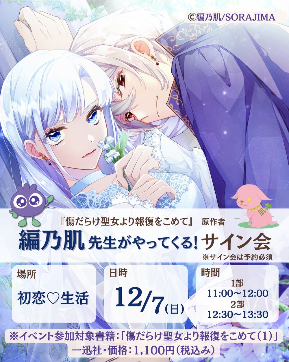 こちらのTEKETサイトにて事前にご予約いただき、当日レジカウンターにて対象書籍『傷だらけ聖女より報復を(1)』をご購入いただいたお客様には、サイン会整理券を配布させていただきます。