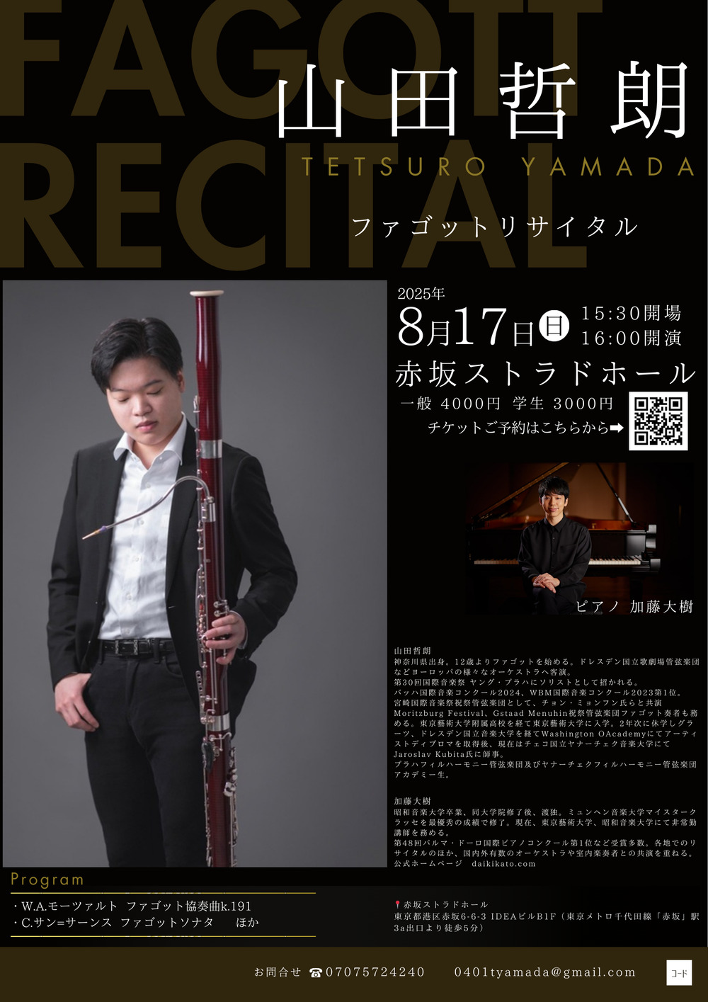 今回のプログラムでは、クラシックの名作からファゴットの王道作品まで、確かな技術と豊かな音楽性で描き出す音の物語をお届けします。