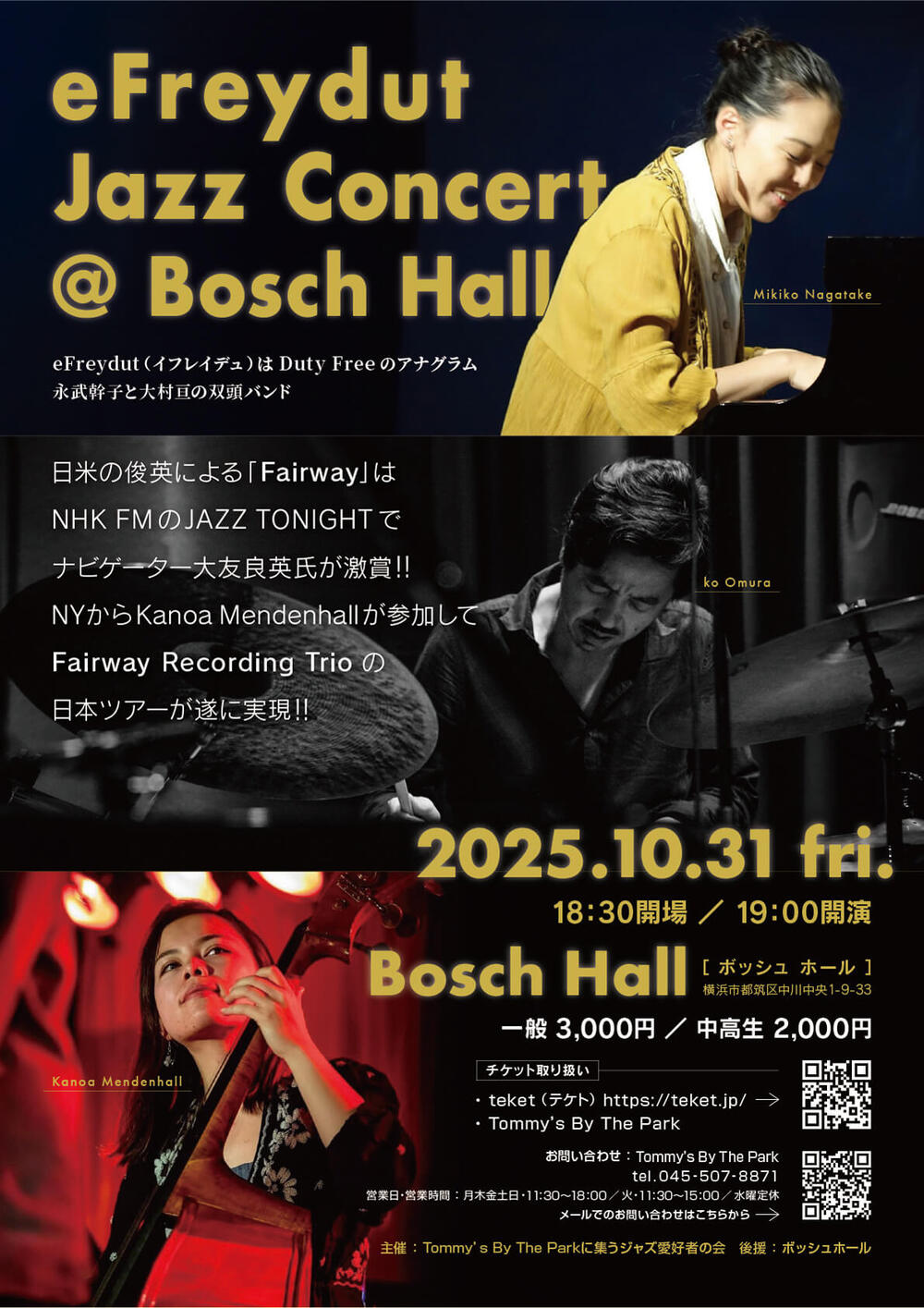 NY から Kanoa Mendenhall が参加して Fairway Recording Trio の日本ツアーが遂に実現しました。