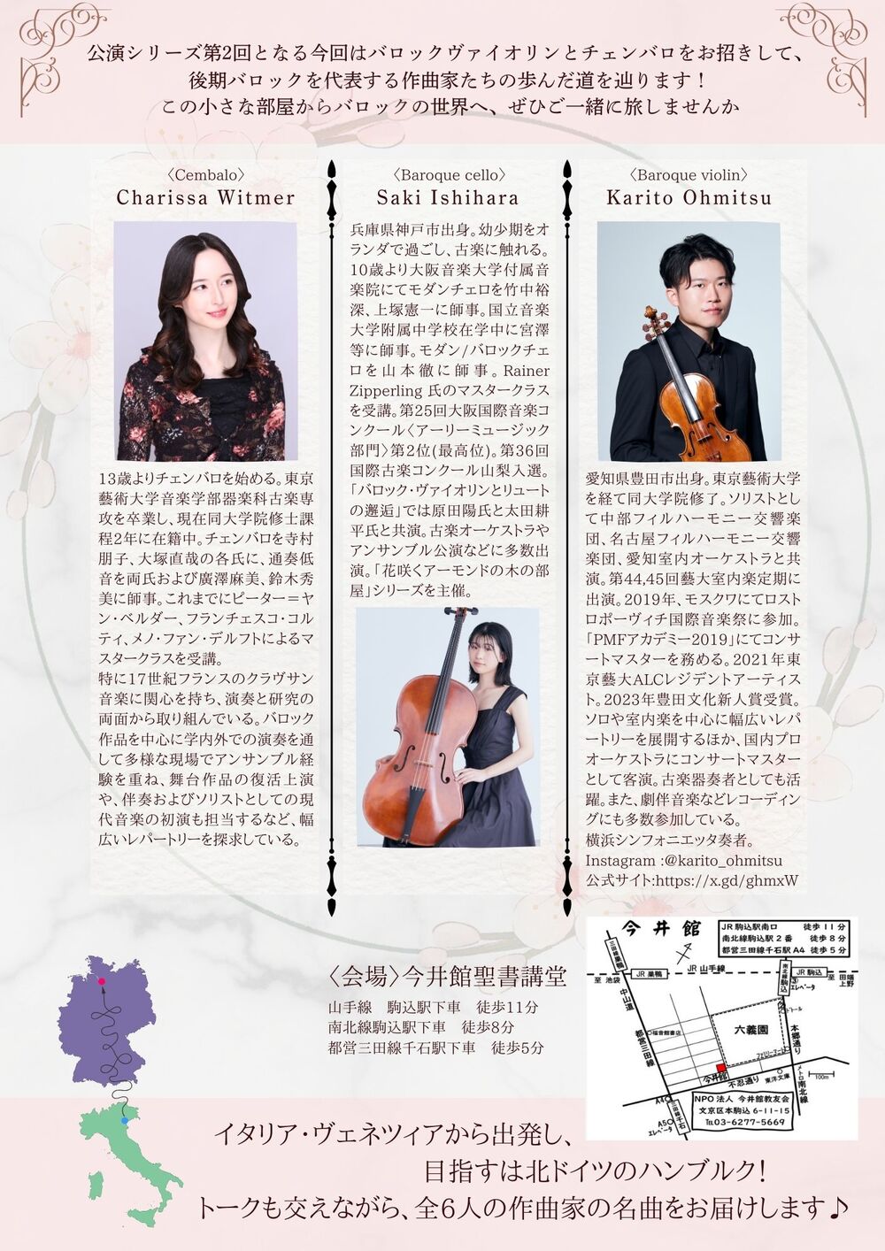 公演シリーズ第2回目となる今回は、バロックヴァイオリンとチェンバロを部屋にお招きします!