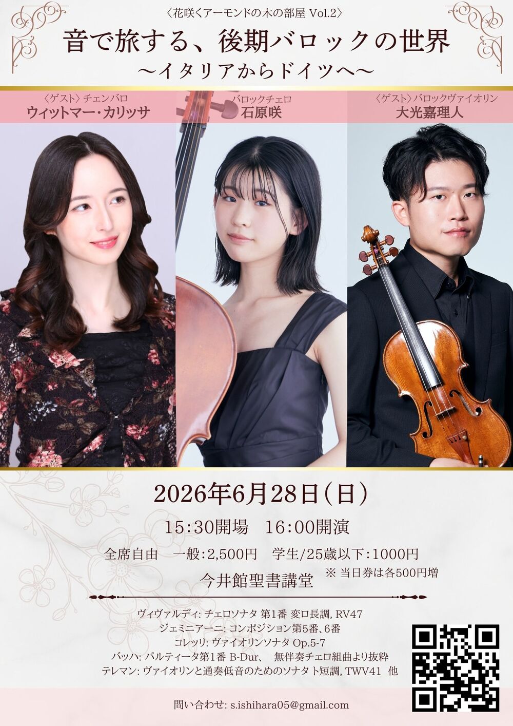 トリオ、デュオ、ソロなど様々な編成でお聴きいただきながら、古楽器の響きで後期バロックの世界をお楽しみください!