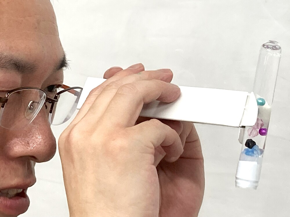 光の反射や液体の粘性について学びながら、自動でゆっくりと見え方が変わるオリジナルの万華鏡を作ろう!