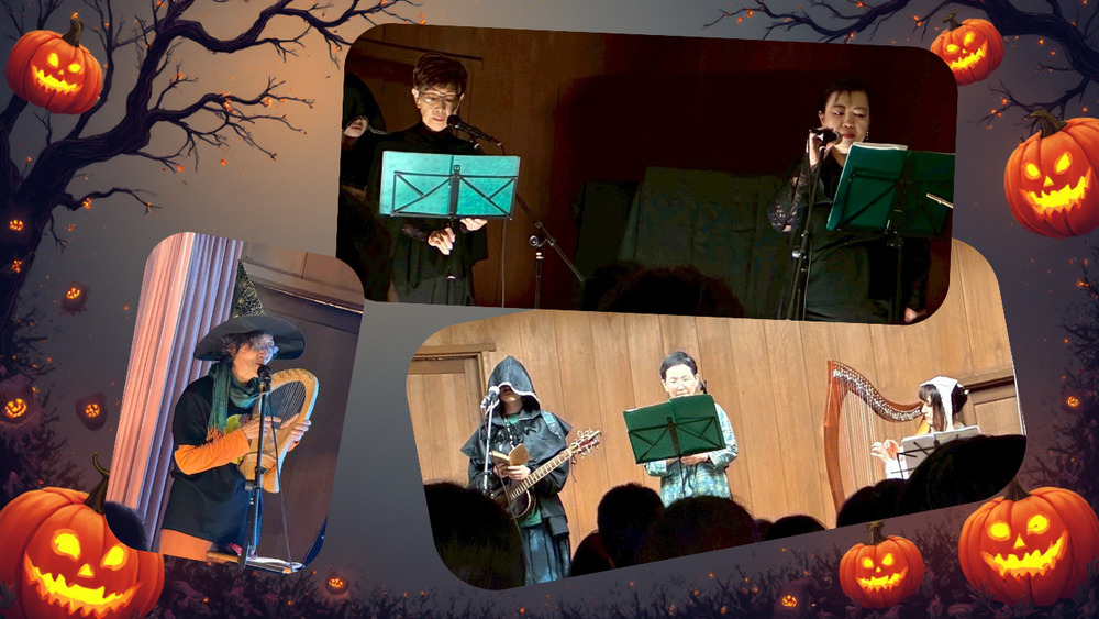 当日の物語の語りでは洋の東西のゴーストをハロウィンに招き入れ、異界の雰囲気たっぷりでみなさまにお楽しみいただき、Parfilionさんの素晴らしい歌声と、Banna Beagさんによるアイリッシュミュージックセッションでの盛り上がりも大好評でした。