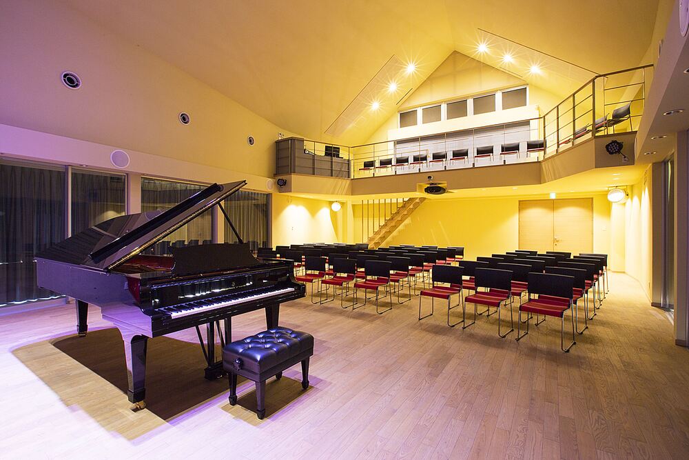 大阪・岸和田にある《むくの木ホール》。“心地良い響き”のなか、スタインウェイ社フルコンサートグランドピアノをじっくり楽しめるホールです。
