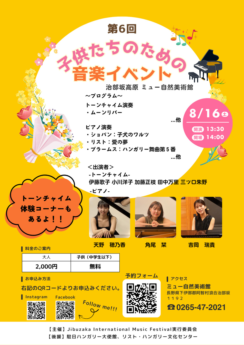 その他のお問い合わせ先:チケット料金は、大人:2,000円、子供:無料となっております。
