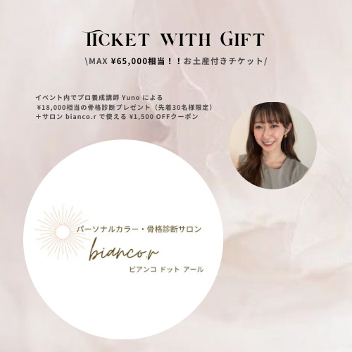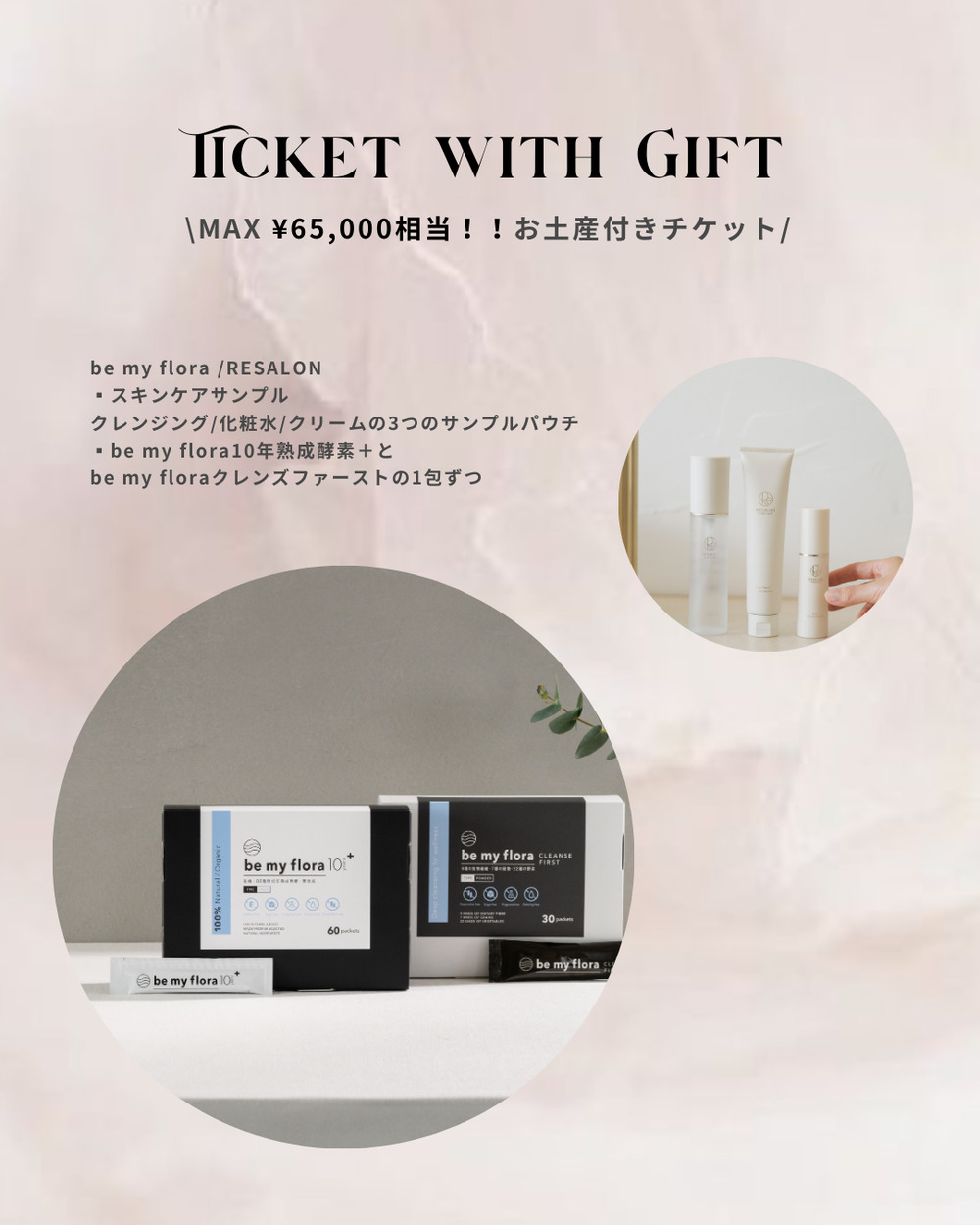 ▪︎お土産付きチケットには、美容関連の人気商品を中心に、チケット代金以上の内容をご用意しております。詳細は当日のお楽しみとなりますが、一部は公式Instagramにて公開予定です。