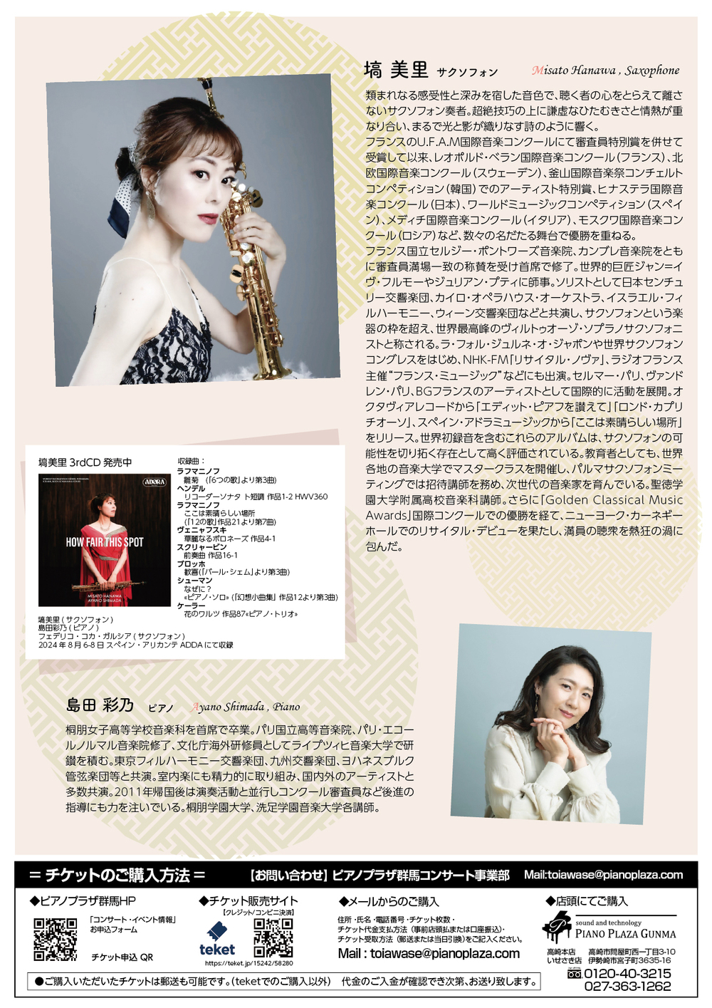 ピアノプラザ群馬主催のニューイヤーコンサート。今年はサクソフォン奏者の塙美里さんの演奏をお楽しみください♪