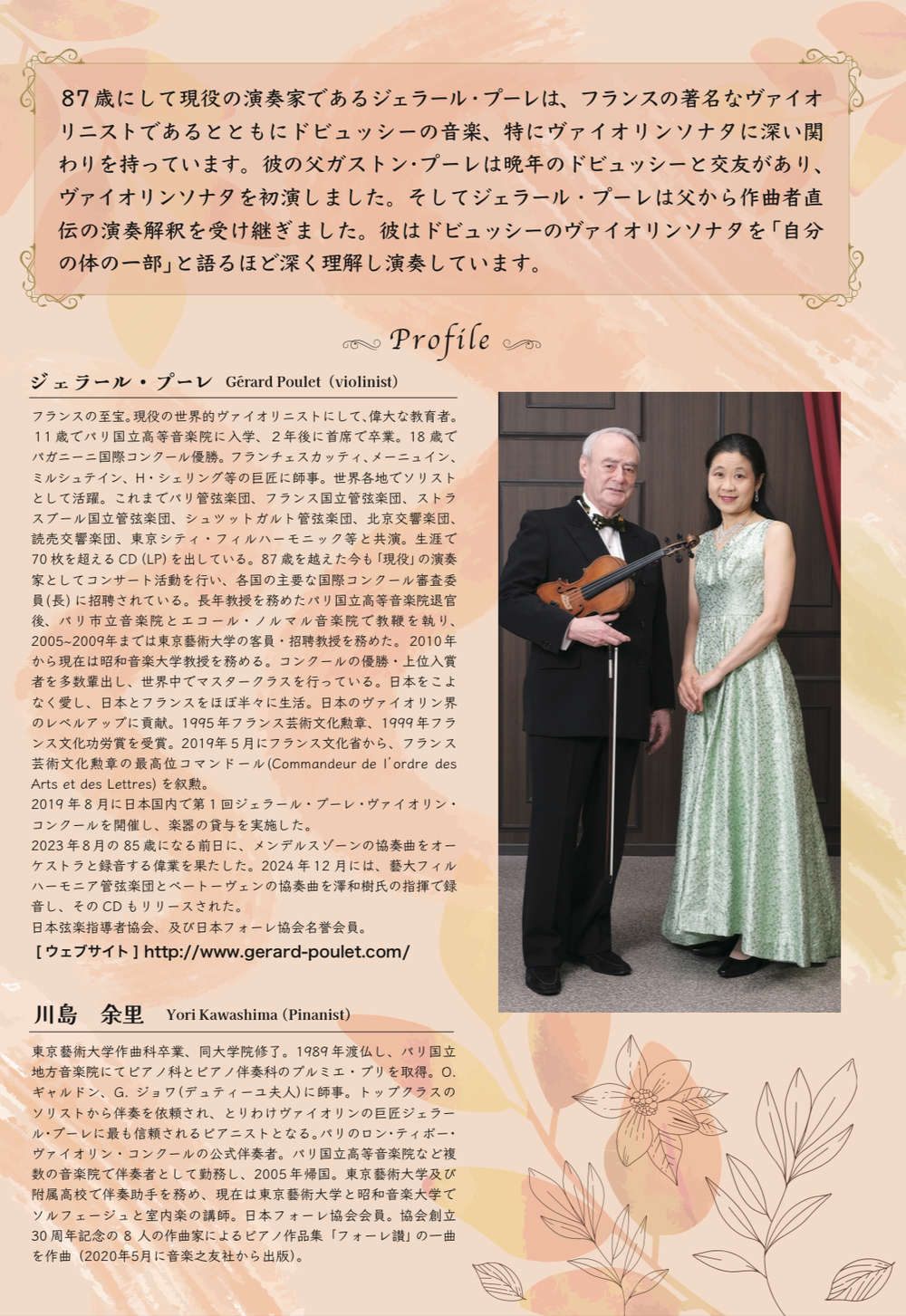 ・フランク:ヴァイオリンとピアノのためのソナタ イ長調・ドビュッシー:ヴァイオリンとピアノのためのソナタ・ラヴェル:ツィガーヌ 他
