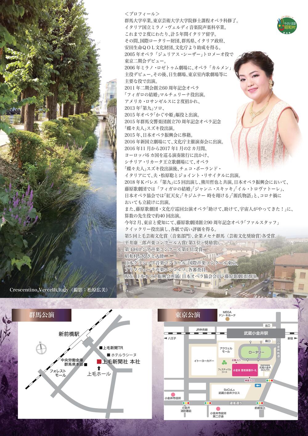 日本を代表するメゾソプラノの一人、松原広美が、この冬リサイタル・シリーズを再開。今回は、得意とするイタリアのオペラや歌曲を中心に、この数年研究を進めている山田耕筰の作品を演奏する。ピアノは、夫君・松原聡。