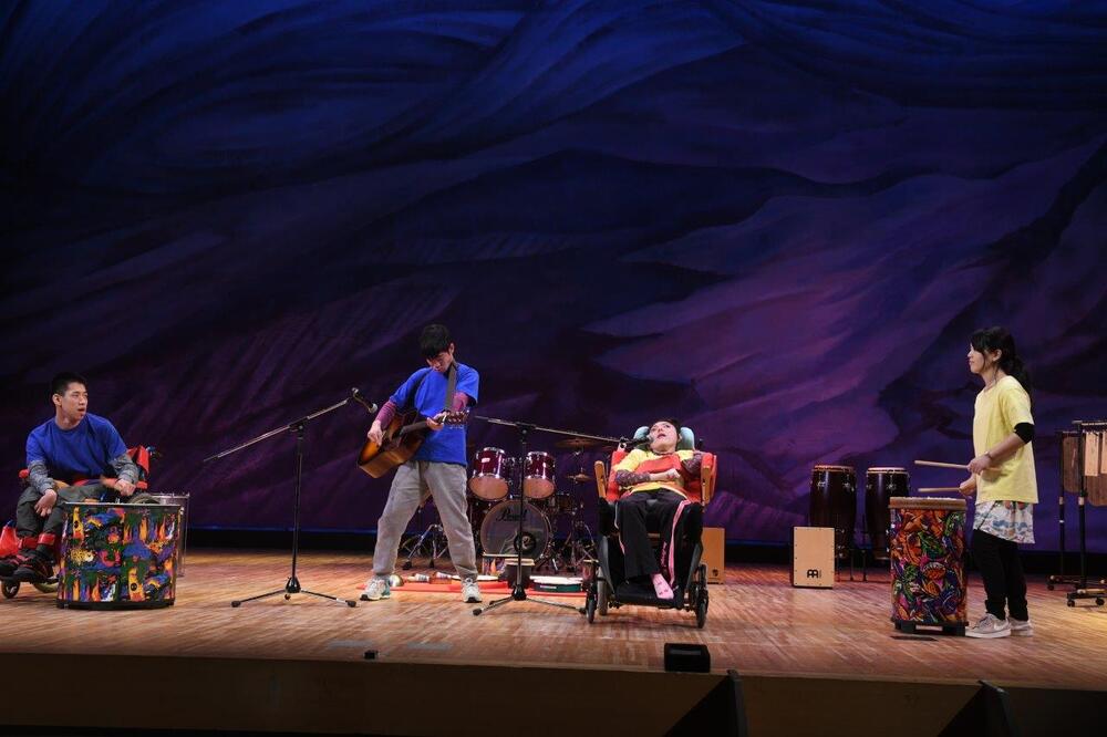 ワークショップをナビゲートする音楽家やダンサーにより、出演者の表現は自由にひき出され、また、総合プロデューサーであるフォークシンガーの小室等氏やゲストミュージシャンとのコラボレーションにより、さらに輝きを放ちます。