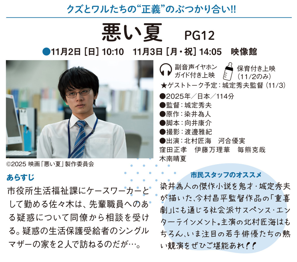 11/3『悪い夏』上映後に城定秀夫監督によるトークイベントを実施します。