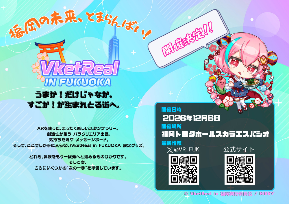 『VketReal in FUKUOKA』では、地元クリエイターや学生とのコラボレーションを積極的に行い、福岡らしさを感じられる展示や体験コンテンツを企画中です。