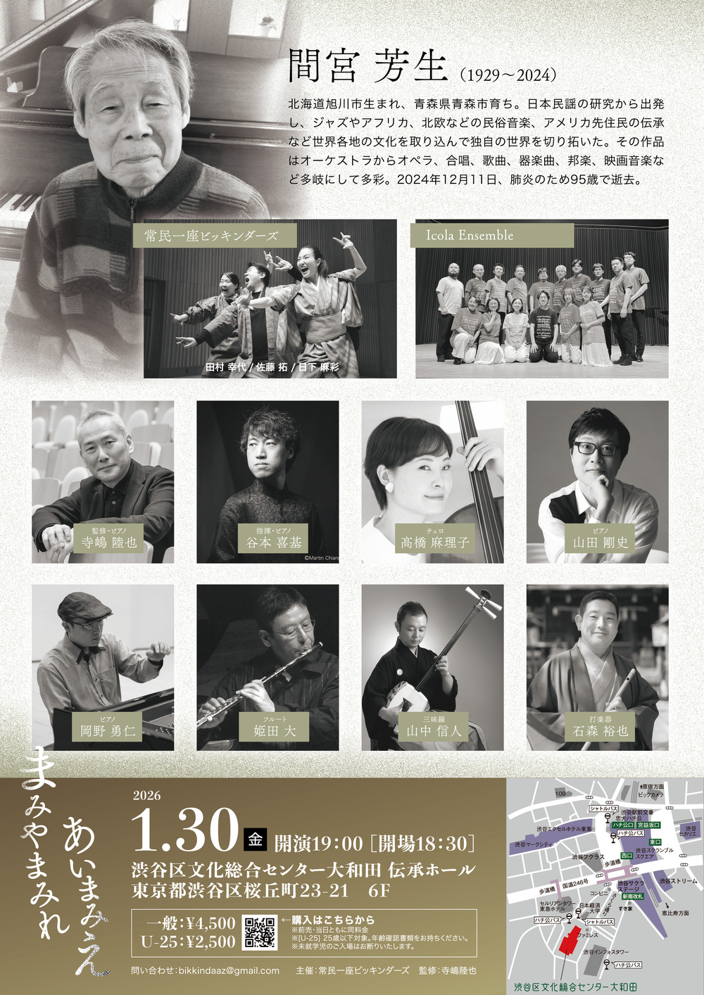 間宮芳生(1929-2024)は私たちに何を残していったか?その問いに応じんとする、間宮の千姿万態の音世界にまみれた者たちが、今ここにあいまみえる!