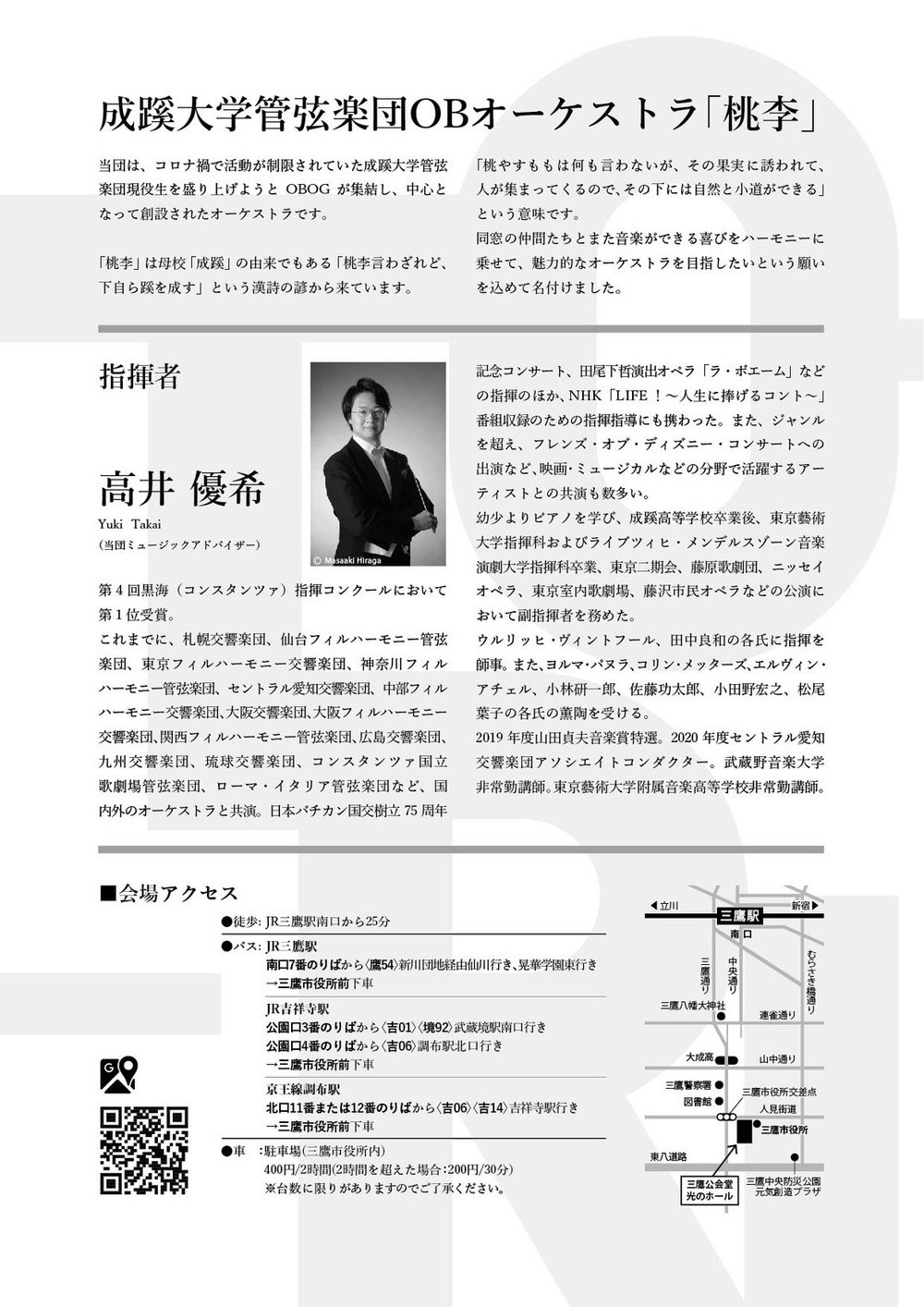 その他のお問い合わせ先:成蹊大学管弦楽団OBオーケストラ「桃李」