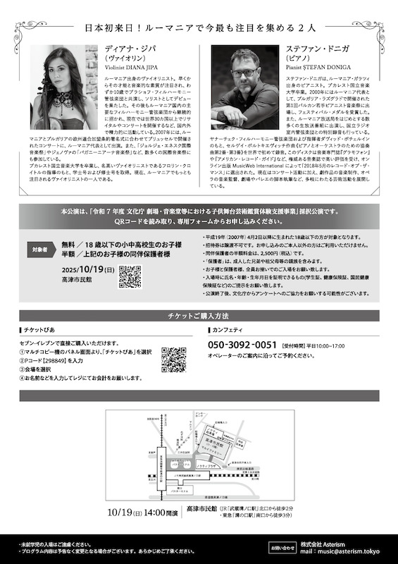 *コンサート当日のご入場時に年齢を確認させていただきます。必ず、学生証、保険証等をご持参の上ご来場いただきますようお願い申し上げます。