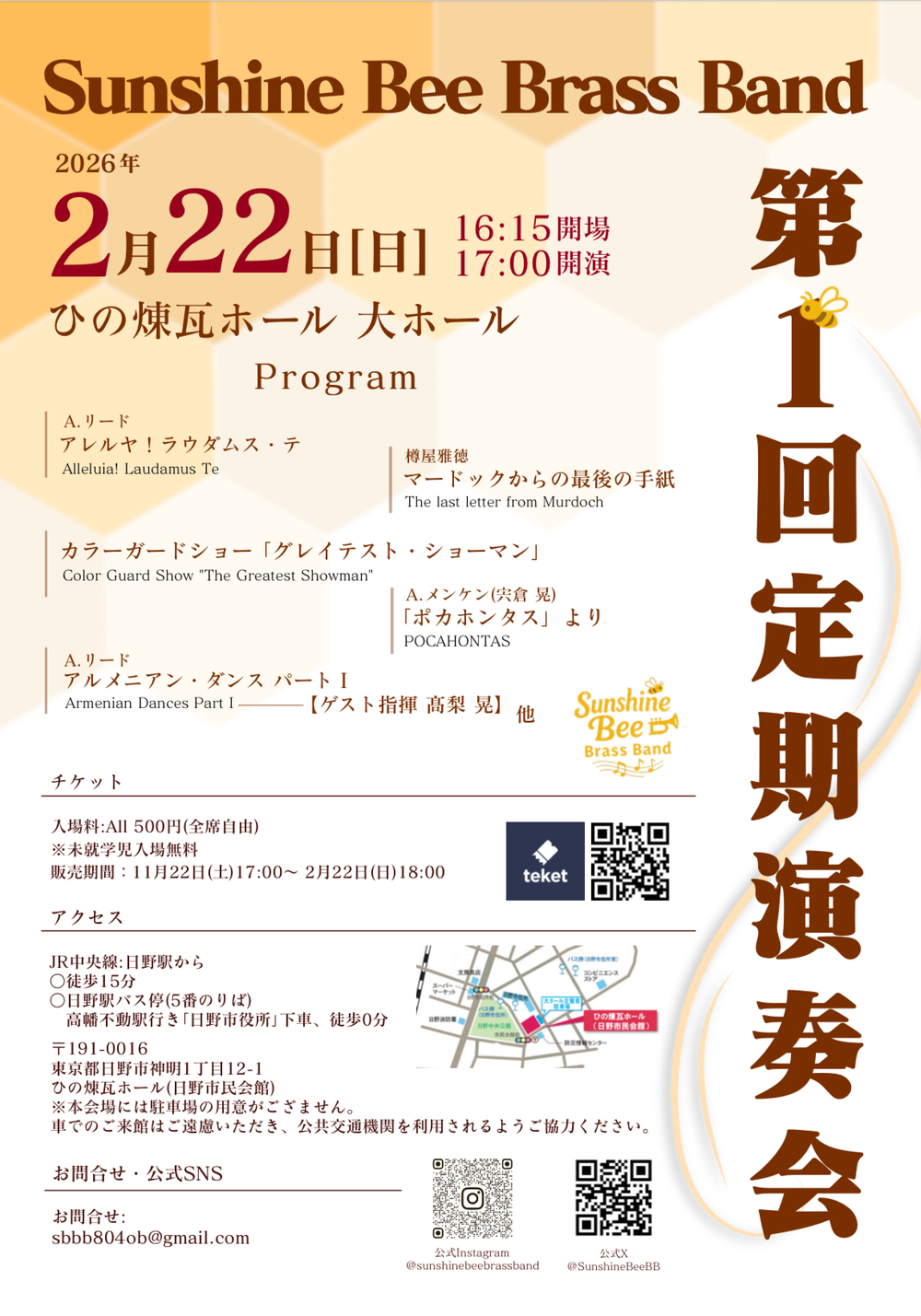 Sunshine Bee Brass Band は、八王子学園八王子高等学校吹奏楽部の卒業生で結成されたOBバンドです。
