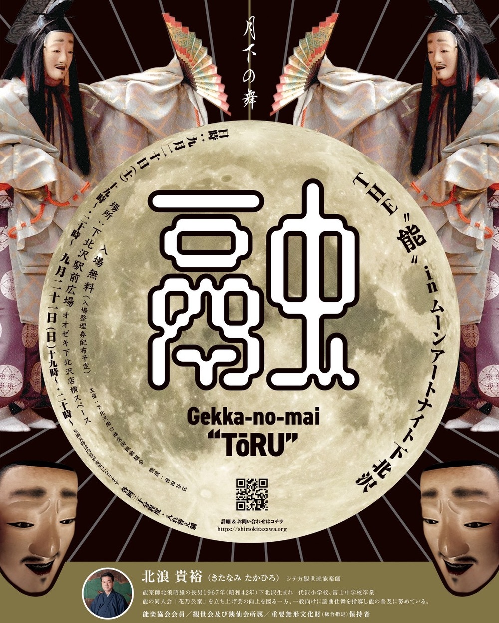 月をテーマにした、世阿弥作の夢幻能の名作の後半部分を上演。ムーンアートナイト下北沢という場所を得て、幽玄な魅力がさらに増幅されます。
