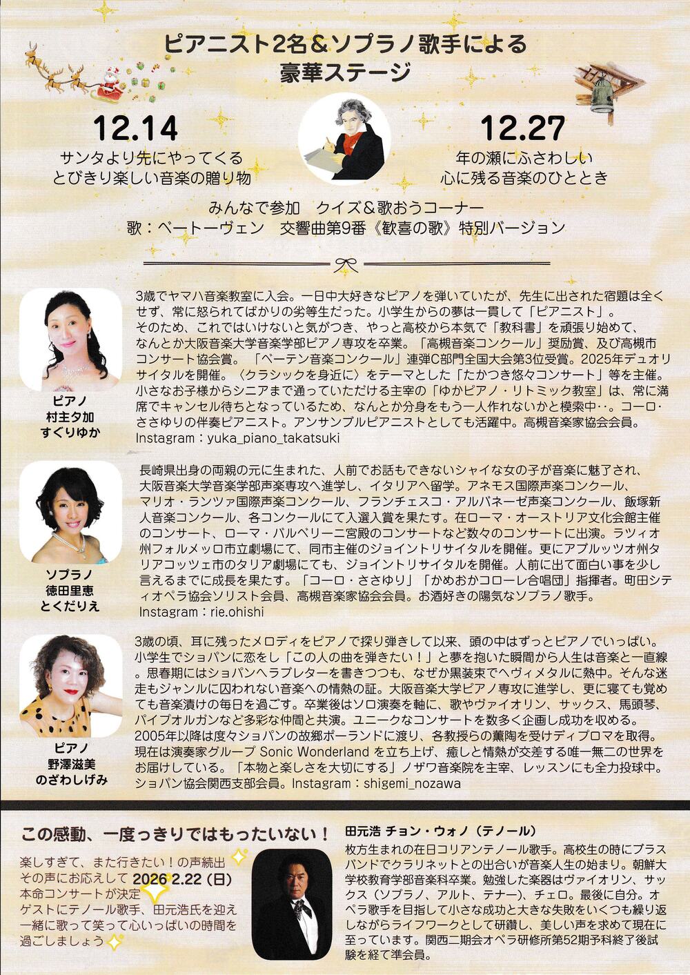 ピアニスト2名とソプラノ歌手による豪華ステージ