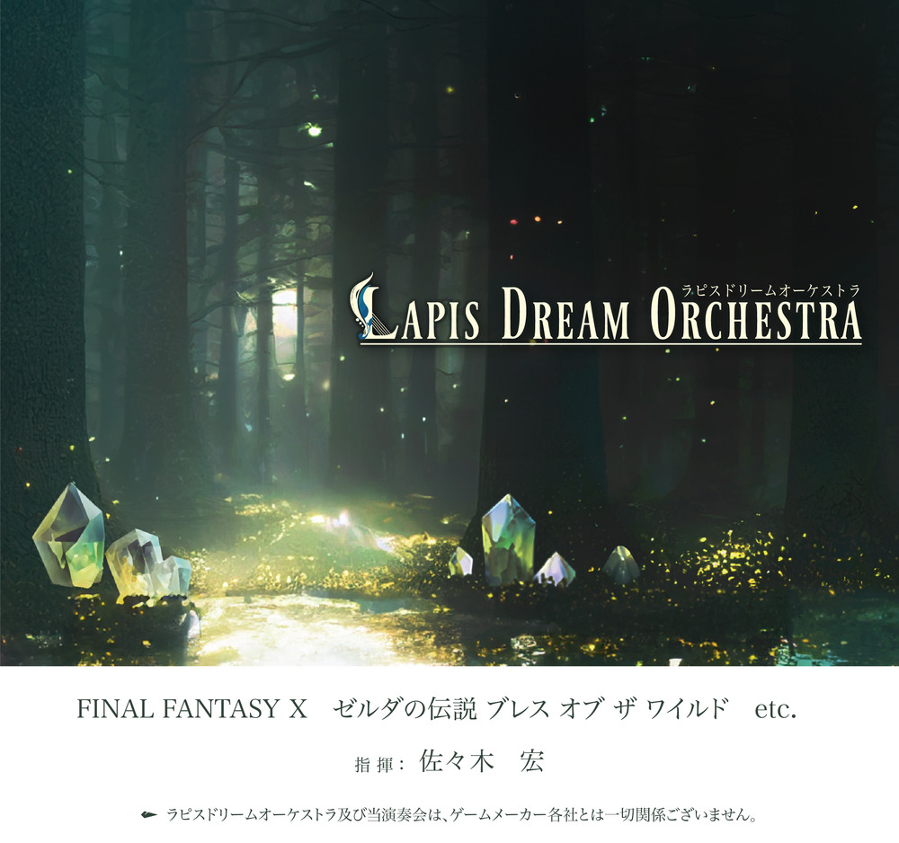 私たちラピスドリームオーケストラは、ゲーム音楽をオーケストラアレンジで演奏する楽団です。