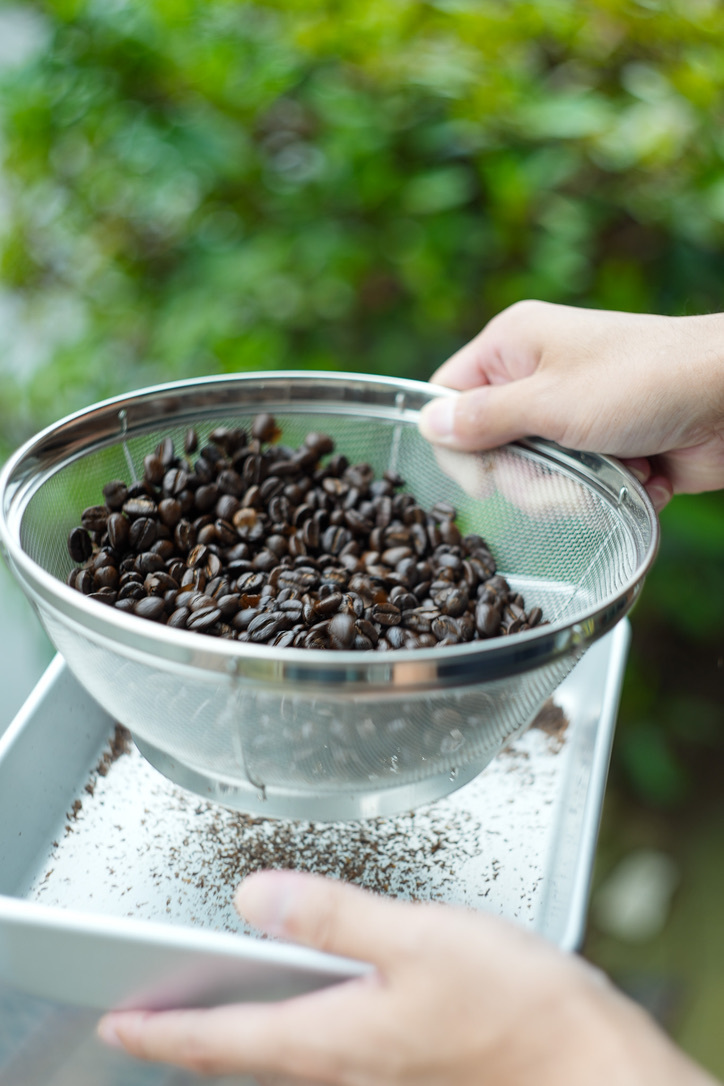 - 狙った焙煎度に達したら、あなたのタイミングで焙煎した豆を火から上げます。
