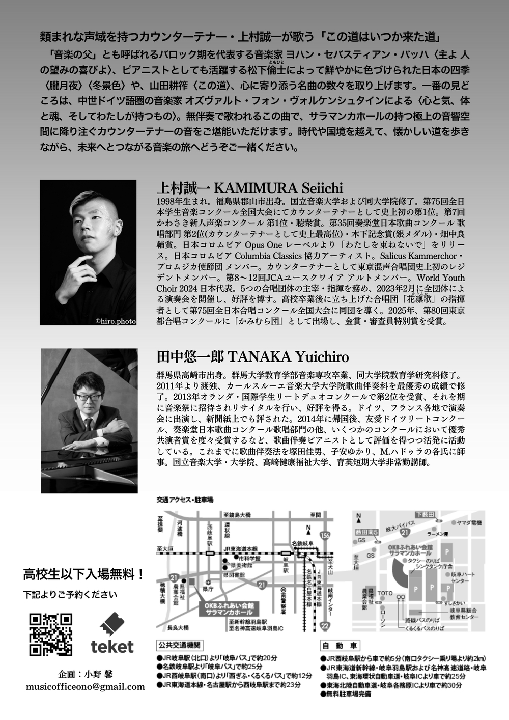 カウンターテナー上村誠一ソロリサイタル岐阜公演