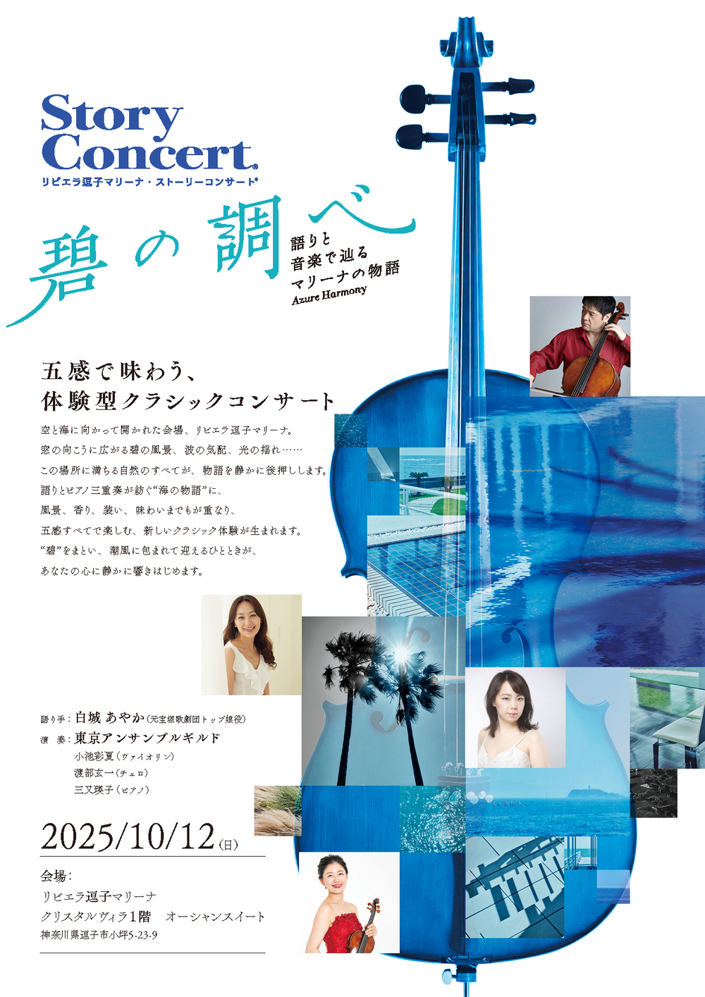 語りとピアノ三重奏が紡ぐ“海の物語”に、風景、香り、装い、味わいまでもが重なり、五感すべてで楽しむ、新しいクラシック体験が生まれます。