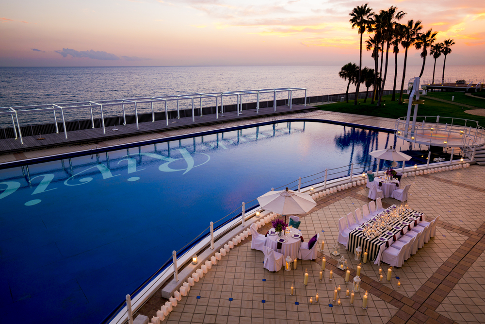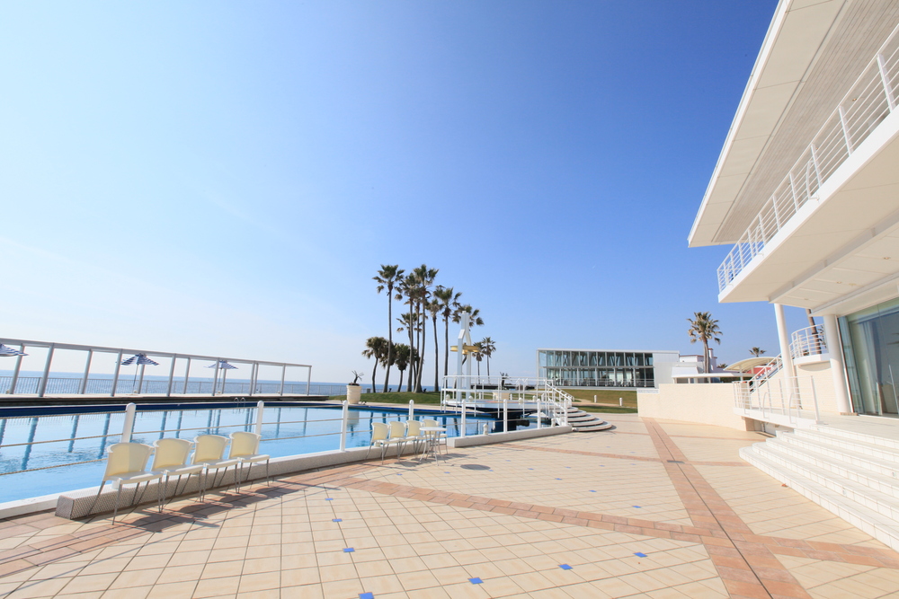 空と海に向かって開かれた会場、リビエラ逗子マリーナ。