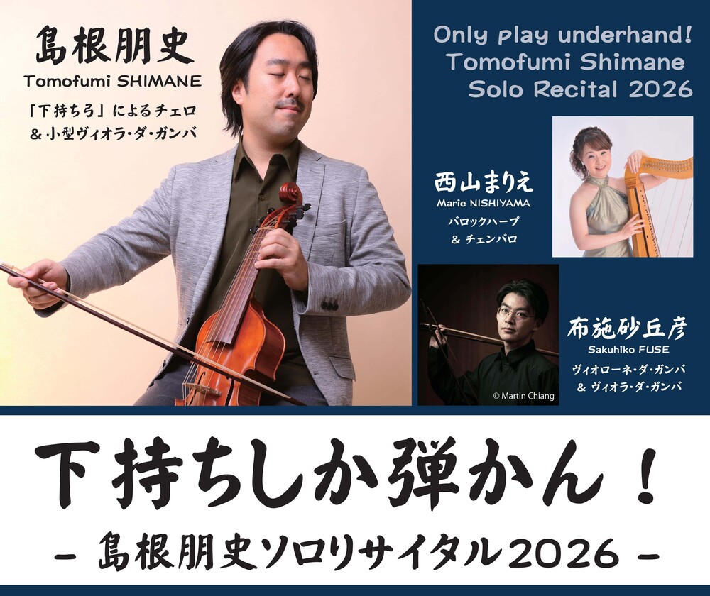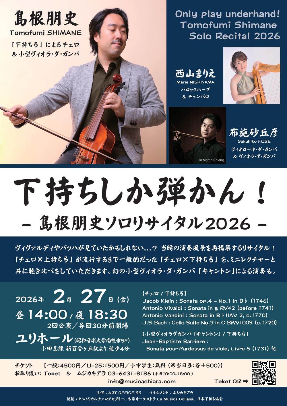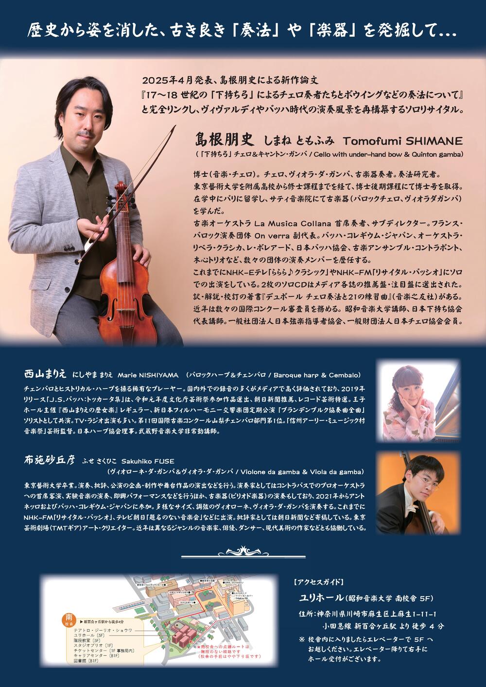 後援:ヒストリカルチェロアカデミー、古楽オーケストラLa Musica Collana、日本下持ち協会