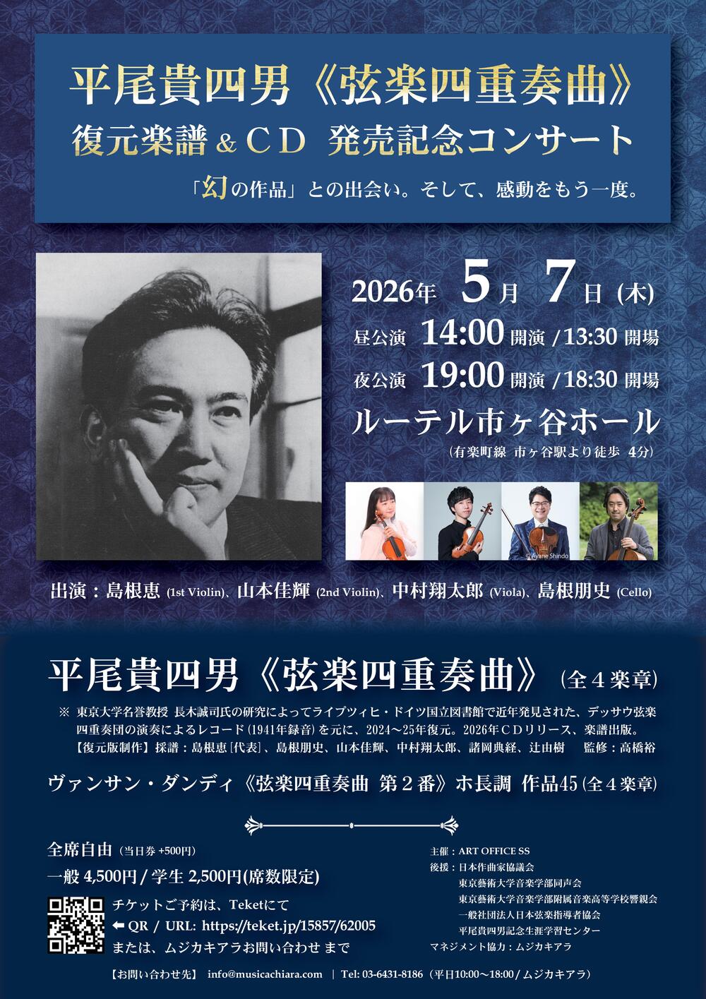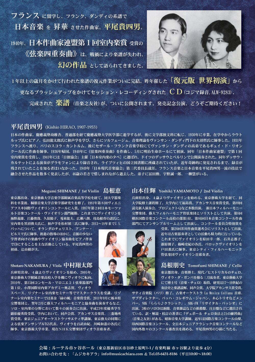 平尾貴四男《弦楽四重奏曲》(1940作曲 / 2025復元)