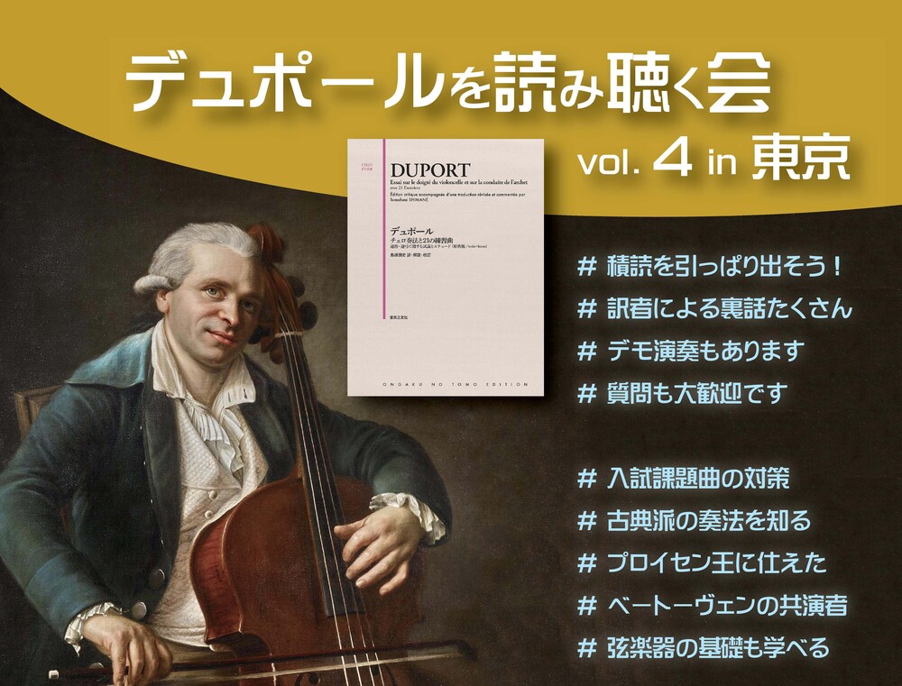 ※ 当日会場にて 『デュポール:チェロ奏法と21の練習曲』 をお買い求めいただくことも可能ですが、すでにお持ちの方はぜひご持参ください。
