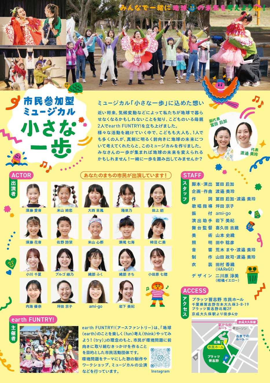 これまで小さな会場、公園、小学校等で公演をしてきたearth FUNTRY! オリジナルミュージカル『小さな一歩』が、初めて劇場にて上演されます!