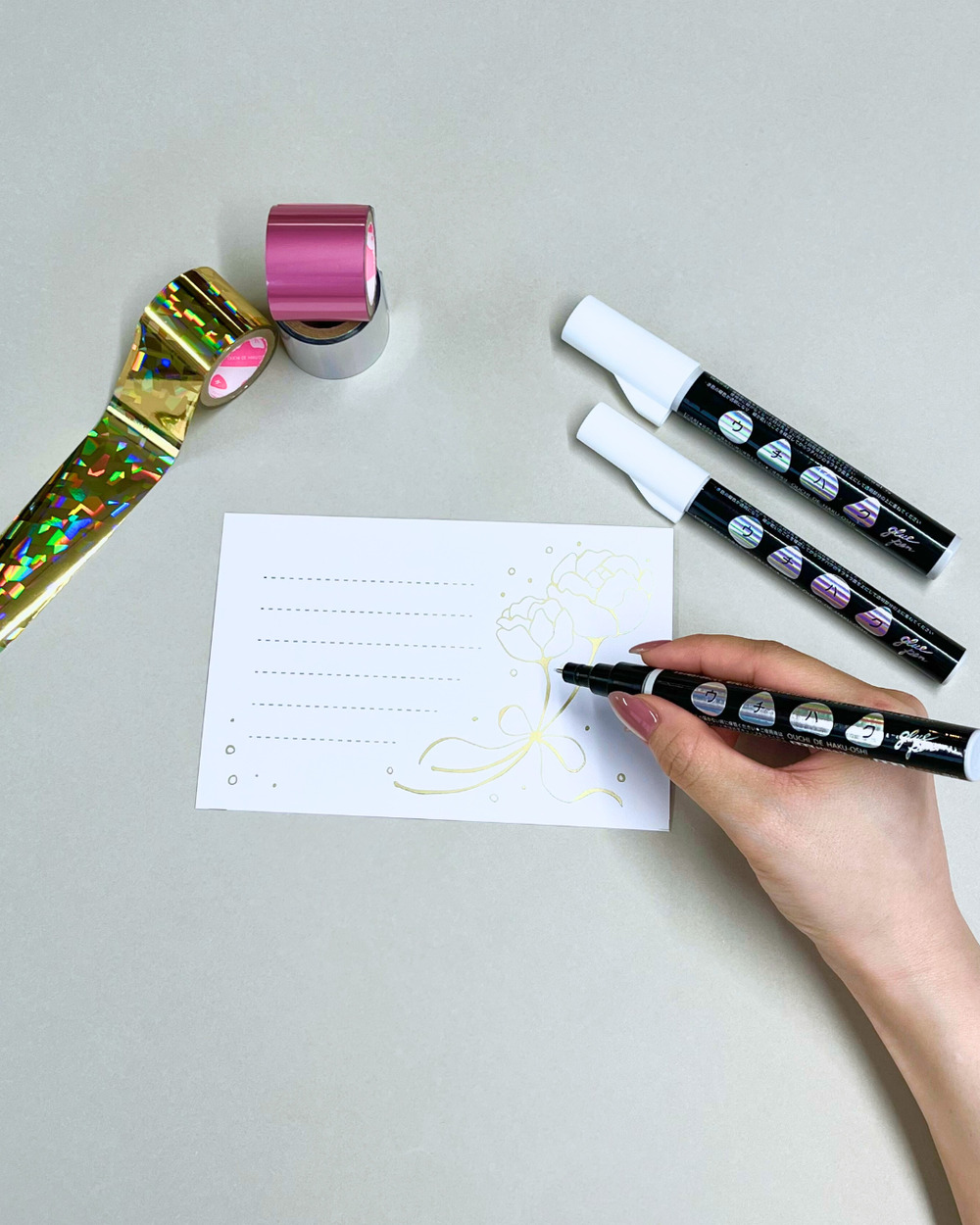・箔押しポストカードにウチハクglue penで箔押し体験