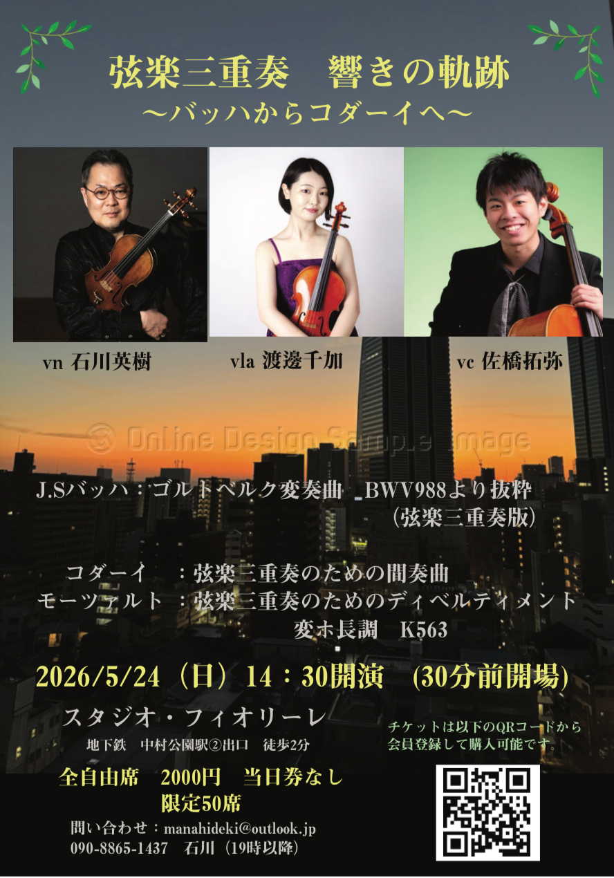 vlaの名手、vcの名手との弦楽三重奏をお楽しみ頂ければ幸いです。