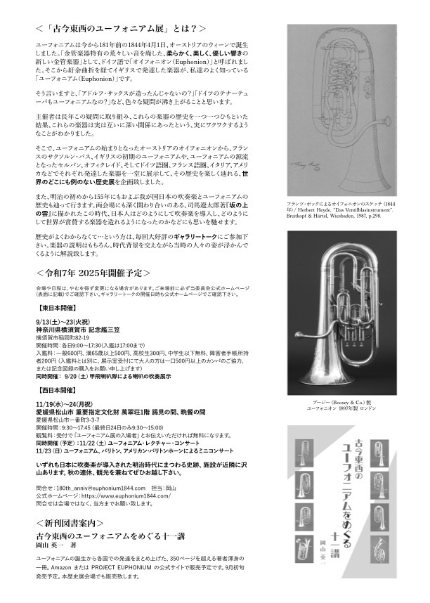本歴史展開催期間中、プロのユーフォニアム奏者によるミニコンサートも開催します(コンサート観覧の場合、別途料金が掛かります)。