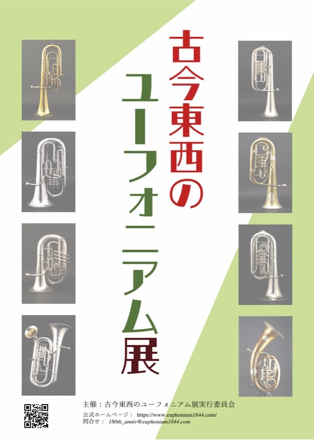 吹奏楽やブラスバンドで使われる金管楽器、ユーフォニアムの歴史展です。金管楽器の中で最も歴史が浅いと言われるユーフォニアムですが、「誰が発明したのか?(アドルフ・サックスではありません!)」「いつ特許が取られたのか?」「どのように発達してきたのか?」などがよく判らない上に、世界各地では違う形や違う名称の楽器が用いられています。この歴史展では、ユーフォニアムの開発前から使われていた楽器から、現在も各地で使われている楽器30台近くを一挙に展示して、ギャラリートークで詳しく辿っていきます。