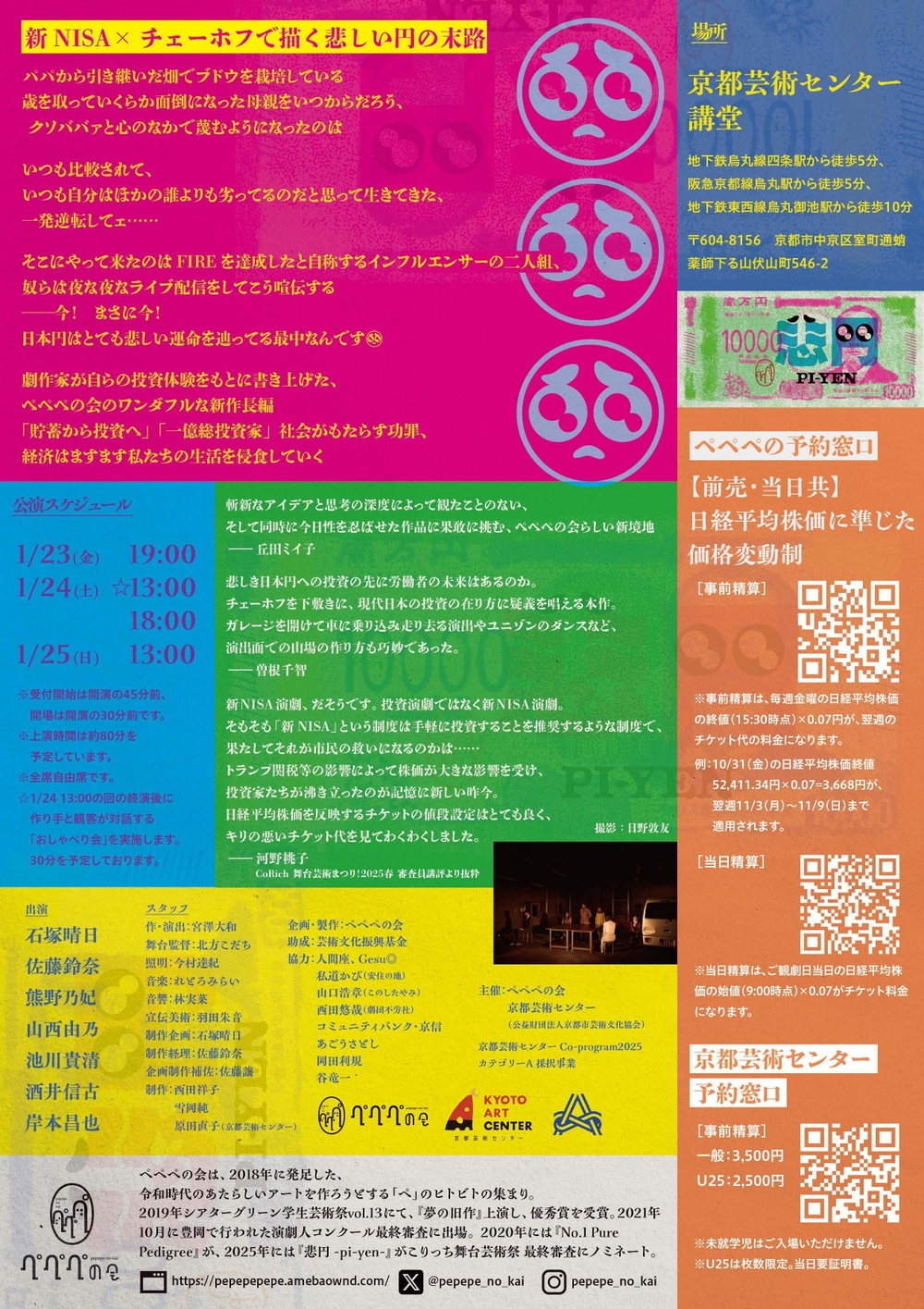 円安はあなたの生活にどう影響していますか? 円が高すぎるのもそうですが、円が安すぎるのは困りものです チェーホフの傑作悲劇『ワーニャ伯父さん』を下敷きに 「資産」をめぐるワンダフルな超大作を上演します! あなたの未来は、ぴえん(悲円)?それとも?