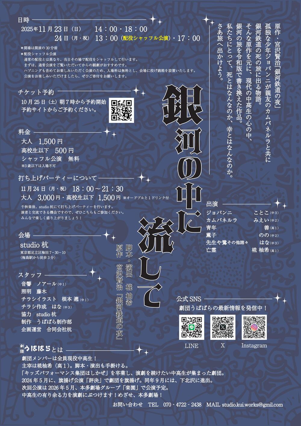 ほしかぜ卒業公演「贋作・銀河鉄道の夜」を経験してきたメンバーが、自分たちの「銀河鉄道の夜」を作り上げます。