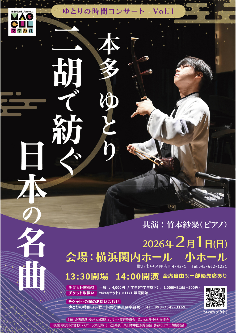 横浜出身の若手二胡奏者・本多ゆとりが贈る、2026年第1弾は「ゆとりの時間コンサート」。
