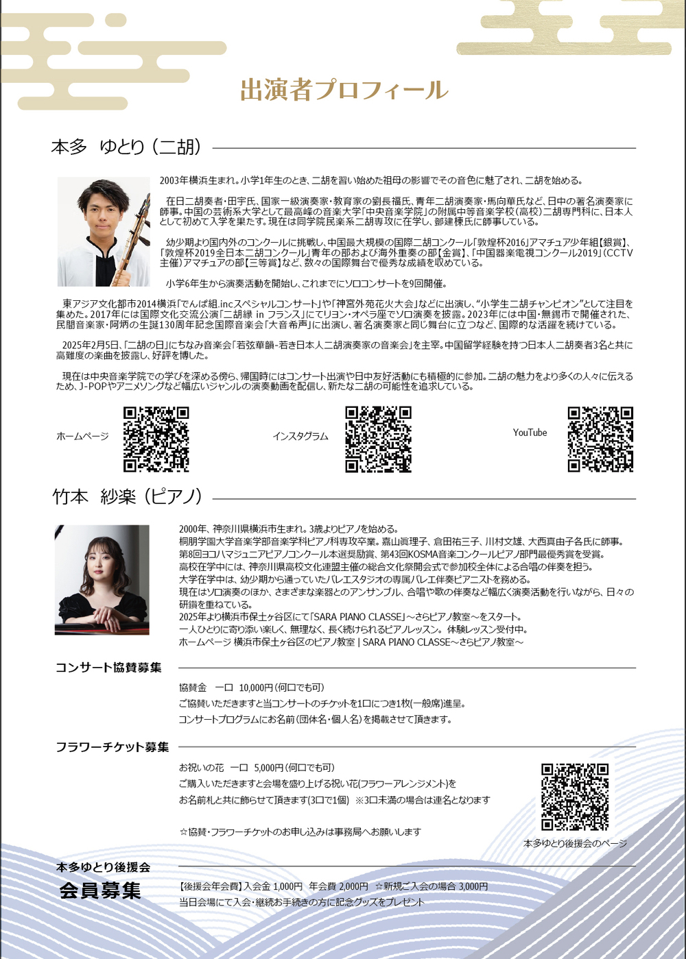 本多ゆとり(二胡) 竹本紗楽(ピアノ)